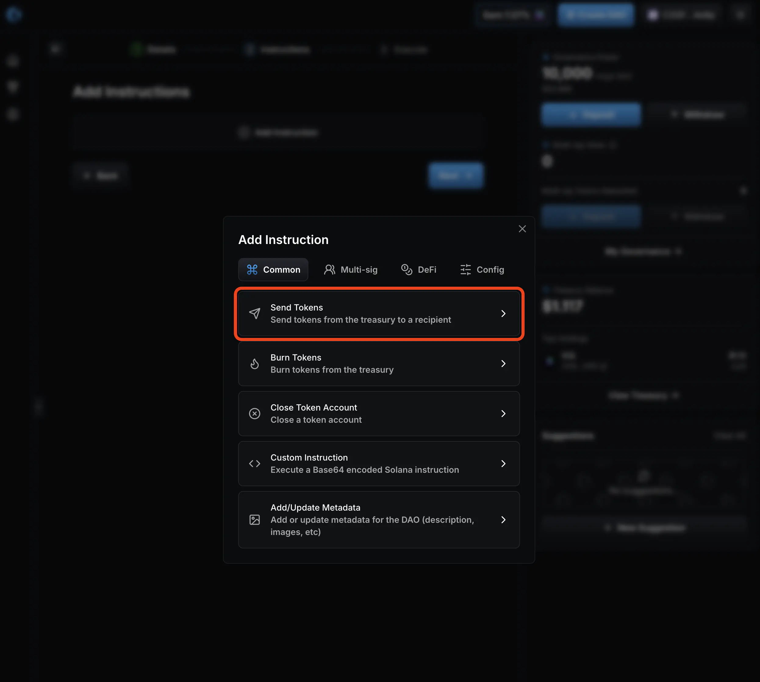 1. Click “Send Tokens”.