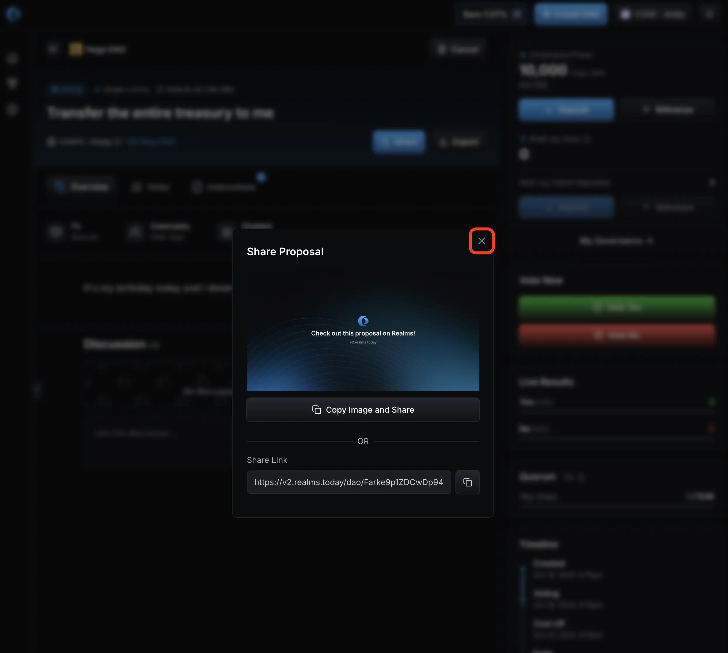 1. Your proposal has now been created! If a share dialog is shown, close it.