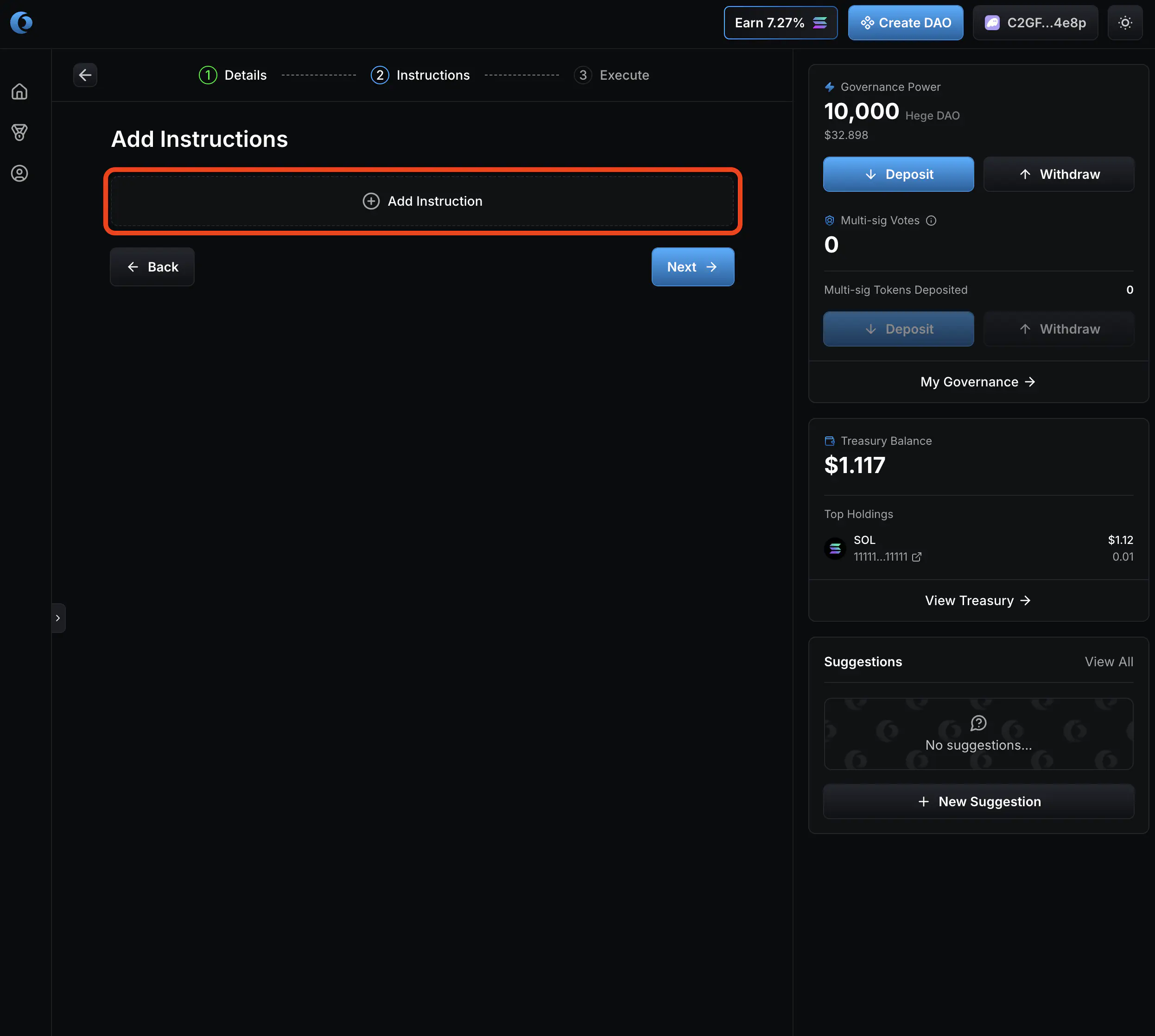 1. Click “Add Instruction”.