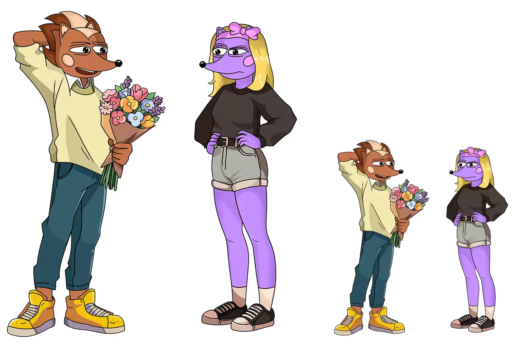 Hege offering Hegena a boquet of flowers